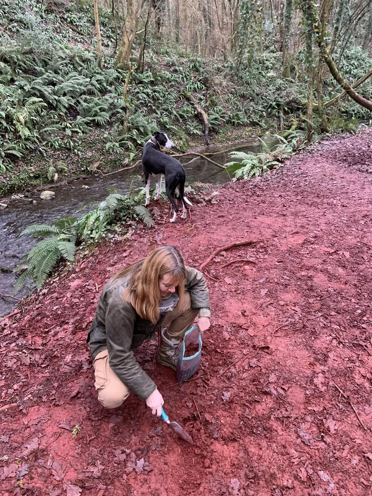 Working with rocks, clays, semi precious stones and (pre-made) plant lakes. Sourcing, finding, foraging and selecting sources and materials. Then testing, smashing, grinding, washing (levigation), sieving, drying, braying, mulling of pigments. Calcining (cooking) ochres to obtain a larger range of colours.